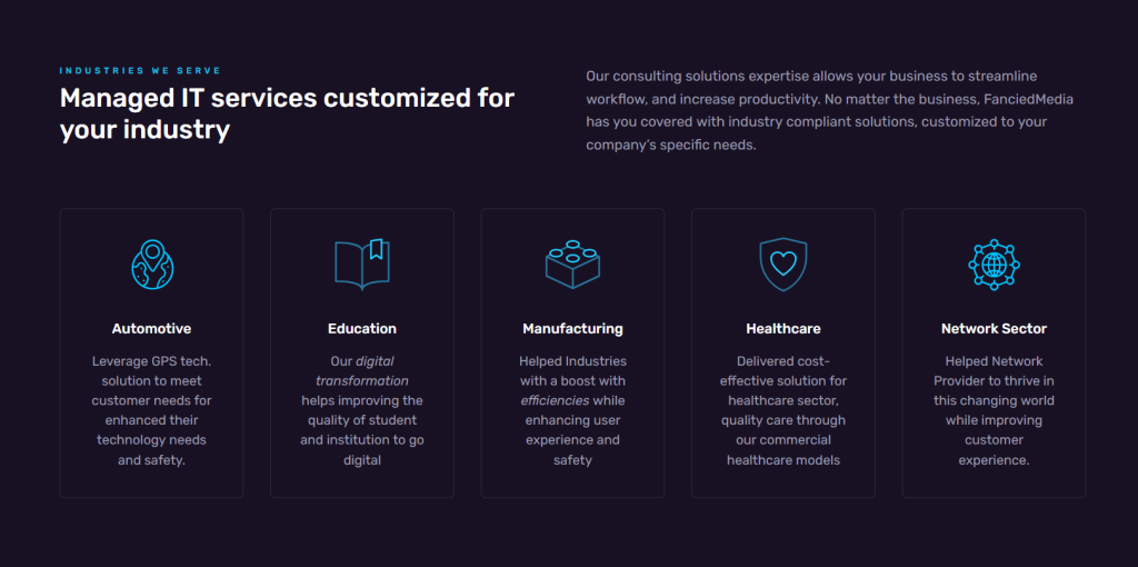 Industry-Specific Solutioning: Dynamic modules for automotive, education, manufacturing, healthcare, and network sectors, ensuring tailored user experiences.